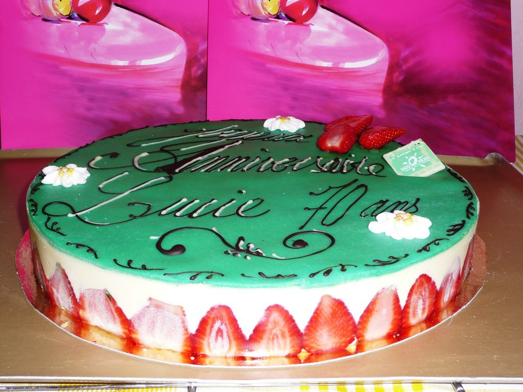 Fraisier : Génoise nature, crème mousseline vanille, fraises.