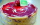 Fraicheur : Mousse fraise, mousse fruits de la passion, croquant citron meringué, biscuit amande, et génoise.